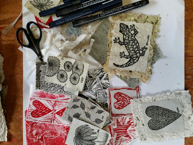 Tykkään kovasti noista alastomista puunrungoista ja tein kokeeksi myös käsintehtyyn paperiin. Niissä näkyy pinta niin ihanasti ja vaikutelma on heti ihan erilainen. Suunnitelmissa on ihan uusia juttuja mutta nyt pitää vielä malttaa että kuntoutuu.